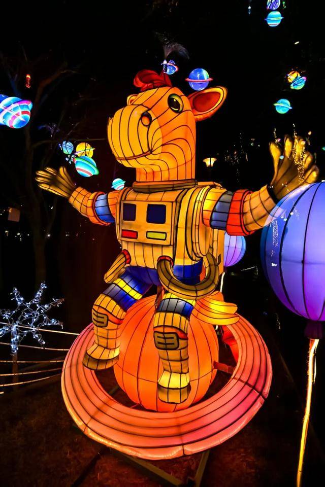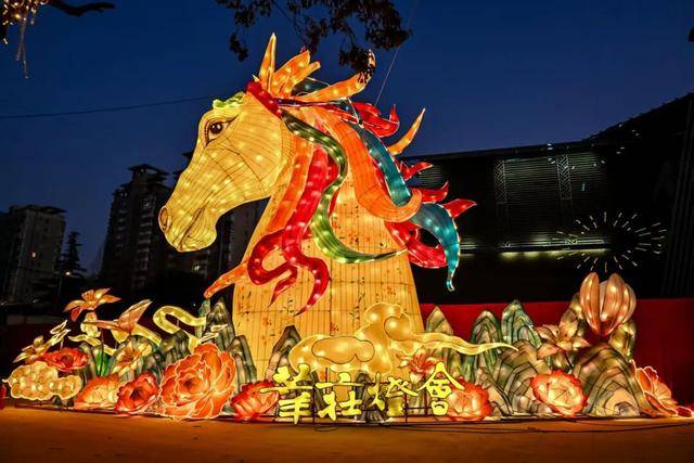 走到仲盛世界商城北广场,马年主题的年味更显醇厚。巨型“马啸长空”灯组以流畅线条与变幻光影,塑造出骏马腾跃的飒爽英姿,成为灯会点题之作。
