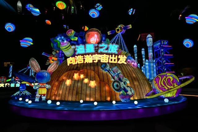 作为闵行特色文化名片,航天元素成为本届灯会的又一亮点。仲盛世界商城南广场的航天主题灯区,将“航天闵行”的硬核实力与新春祝福相融合,为出游家庭、航天迷打造了一处充满未来感的“打卡”胜地。